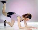 Kľakneme si, oprieme sa o predlaktia rúk. Zdvihneme pokrčenú pravú nohu tak, aby koleno bolo v jednej rovine so zadkom. Nadvihneme ju ešte desať centimetrov, krátko zadržíme a vrátime na úroveň zadku. Opakujeme 10-krát a cvičíme ľavou nohou. Aby sme udržali nohu v správnej pozícii a nevytáčali ju do strán, môžeme si na pokrčené chodidlo položiť knihu.