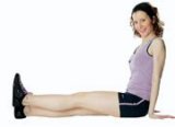 Sadneme si, vystrieme chrbát, hlava je v predĺžení trupu. Dlane položíme vedľa zadku. Ohneme chodidlá na oboch nohách. Vystretú ľavú nohu pomaly zdvihneme zo zeme, podržíme ju v krajnej polohe a uvoľníme. Opakujeme 15-krát a cvičíme pravou nohou.